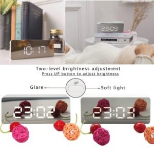 - LED alarm clock is designed as mirror style. LED screen shows clear, which can be used as mirror. It’s a perfect decoration for your bedroom, living room or office.