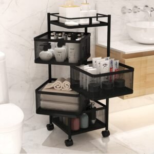 Metal Kitchen Trolley Kitchen Organizer Items and Kitchen Accessories Items for Kitchen Rack Square Design for Fruits & Vegetable Onion Storage Kitchen Trolley with Wheels (4 Layer)
