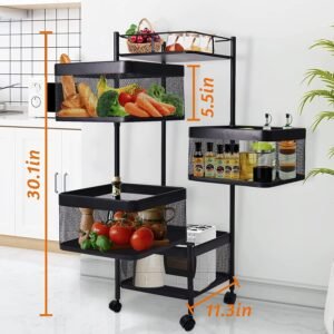 - Rolling carts with multiple baskets provide enough space for your daily storage. Fully enveloping the guardrail, encrypted wire mesh ventilation basket, allowing airflow to keep the freshness of fruits and vegetables.