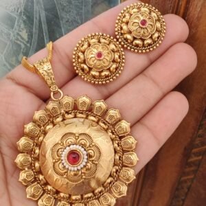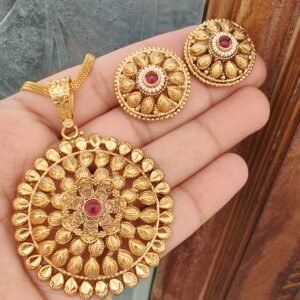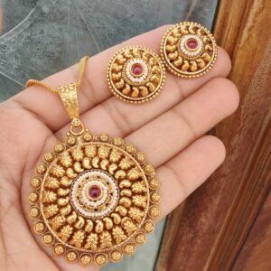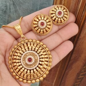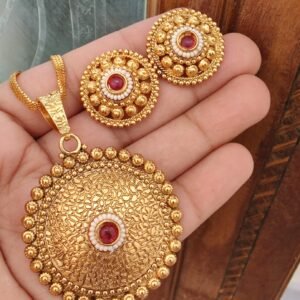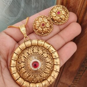 Add an extra touch of sophistication to your jewelry collection with our Beautifully Premium Quality Branded Gold Plated Pendant paired with big size tops and a 20-inch chain. This combo set is the perfect mix of luxury, style, and elegance, designed to stand out and elevate your overall look. Whether for a special occasion or daily wear, this stunning set complements any outfit with its bold, eye-catching appeal and timeless design.
